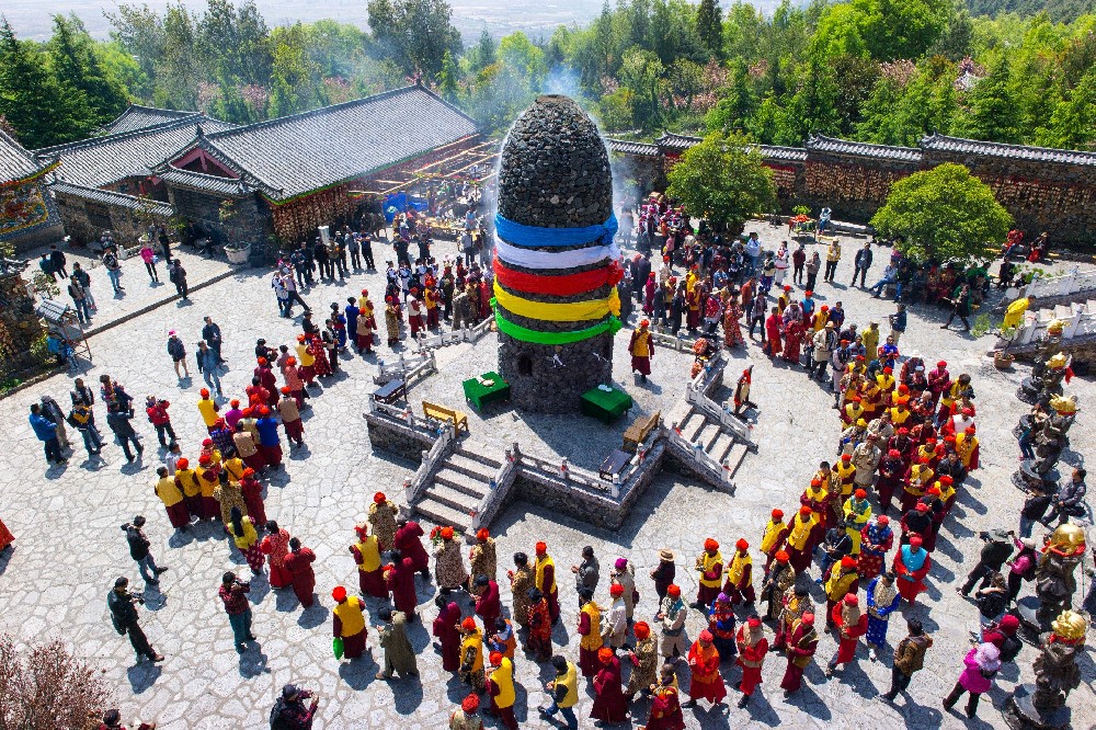 據古老的東巴經《崇搬圖》(創世紀)記載,在宇宙混沌萬物還沒有產生的時候,上方傳來一個美妙的聲音,下方冒出一個白氣,聲音和氣結合產生了天和地。